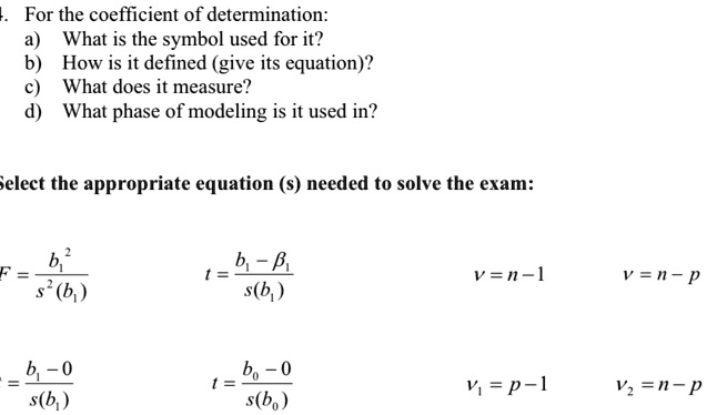 Solved For The Coefficient Of Determination What Is The Symbol Used For It B How Is It Defined Give Its Equation What Does It Measure What Phase Of Modeling Is It Used In