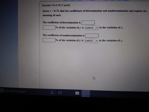 Solved Question 10 Of 10 1 Point Given R 0 73 Find The Chegg Com