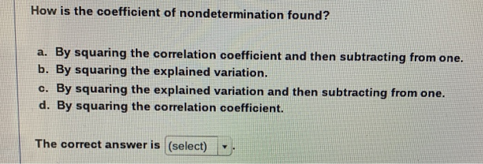 Whats all this variation stuff. Almost no correlation because 070 is close to 10 b. The coefficient of nondetermination is used to describe the difference between the average output and the actual output that is explained by the change in the input o that is negligible o that is unexplained o that is predictable.